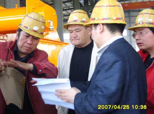 | 公司領(lǐng)導(dǎo)與客戶商討技術(shù)問題 | 公司領(lǐng)導(dǎo)與國外客人進(jìn)行技術(shù)交流 | 車間一隅 |