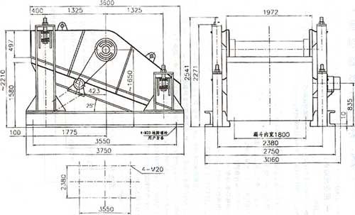 圖7 SZZ1800×3600自定中心振動(dòng)篩安裝尺寸