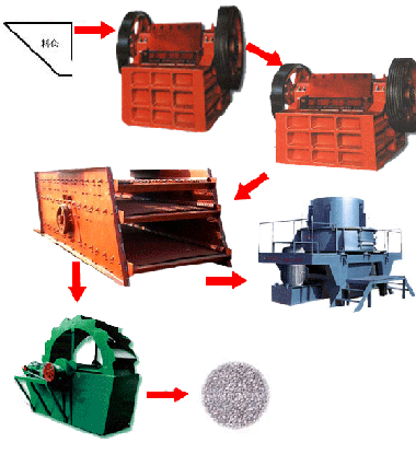 沙石生產(chǎn)線,砂石生產(chǎn)線,砂石生產(chǎn)線設(shè)備,砂石線,砂石生產(chǎn)設(shè)備基本流程:大塊石料經(jīng)料倉(cāng)由振動(dòng)給料機(jī)均勻地送進(jìn)鄂式破碎機(jī)進(jìn)行粗碎,粗碎后的石料由皮帶輸送機(jī)送到反擊式破碎機(jī)進(jìn)行進(jìn)一步破碎;不滿足粒度要求的石子由皮帶輸送機(jī)返料送到反擊式破碎機(jī)進(jìn)行再次破碎,形成閉路多次循環(huán)。
