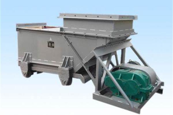 往復(fù)式給煤機(jī)系由機(jī)架,底板(給煤槽),傳動(dòng)平臺(tái)等組成,漏斗閘門(mén),托滾組成。 其工作時(shí),電動(dòng)機(jī)開(kāi)動(dòng)后經(jīng)彈性聯(lián)軸器,減速機(jī),曲柄連桿機(jī)構(gòu)托動(dòng)傾斜5°的底板在托滾上作直線(xiàn)往復(fù)式運(yùn)動(dòng),將煤均勻的卸載到運(yùn)輸機(jī)或其他篩選設(shè)備上。